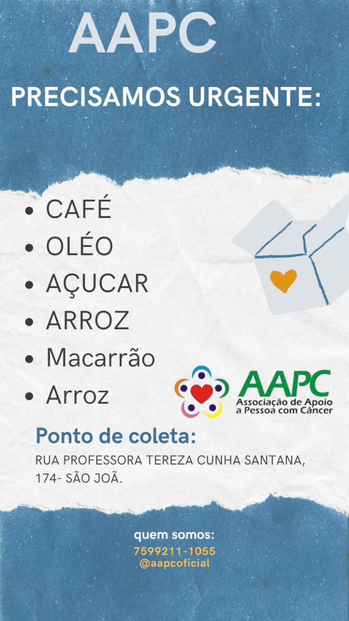 Contribuam com a AAPC – Associação de Amparo às Pessoas com Câncer.