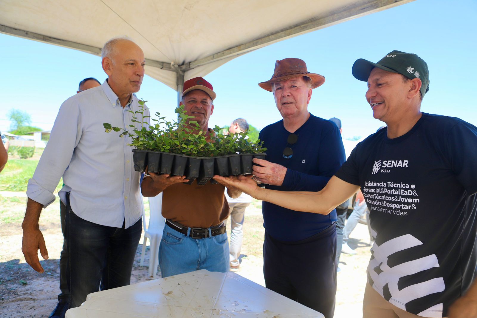 Nesta sexta-feira (14), o deputado federal João Leão (PP) acompanhou a entrega de 71 mil mudas de mirtilo, adquiridas por meio de emenda parlamentar de sua autoria, pelo Sindicato dos Produtores Rurais de Barra aos estudantes da Universidade Federal do Oeste da Bahia (UFOB), Campus Barra, e aos produtores rurais da região.