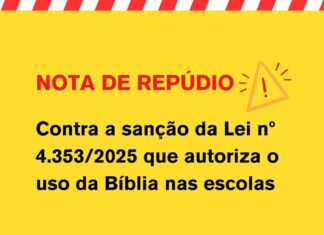 Contra a sanção da Lei nº 4.353/2025 que autoriza o uso da Bíblia nas escolas