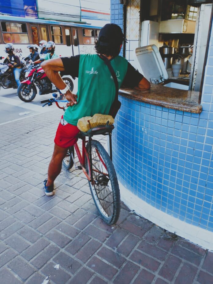 A figura do “Cavaleiro de uma Só Perna”, notória nas ruas de Feira de Santana por sua resiliência em utilizar a montaria como meio de locomoção e trabalho, ganhou um novo capítulo em sua história de superação. Recentemente, a curiosidade da internet foi inicialmente despertada por uma ilusão de ótica em uma foto de seu cavalo, mas o foco rapidamente se voltou para a determinação do homem que enfrenta o trânsito da cidade com uma limitação física. Em uma nova e emblemática aparição, o morador foi flagrado na tarde desta quarta-feira (26) em uma bicicleta, apoiado no balcão do histórico Predileto, na Praça da Bandeira, no Centro.