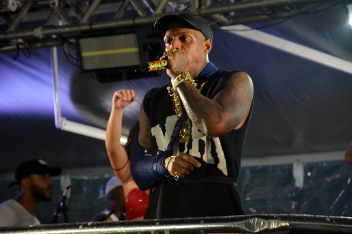 Show de superação e energia. Mesmo com o braço imobilizado devido a um acidente automobilístico ocorrido a caminho de Feira de Santana, o cantor Oh Polêmico, um dos maiores nomes do pagodão baiano na atualidade, não deixou a dor ou as condições adversas impedirem sua apresentação na terceira noite da Micareta 2025, neste sábado (3). Com muita disposição, ele arrastou uma multidão de foliões pelo Circuito Maneca Ferreira, que se entregaram à festa apesar das chuvas torrenciais.
