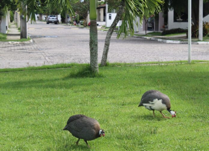 Em alguns condomínios de Feira de Santana quem dão as boas-vindas são os peculiares moradores: galinhas-d’angola, que são usadas como predadoras naturais de insetos e animais peçonhentos que vivem por lá, como aranhas, baratas e escorpiões. Segundo uma moradora a estratégia vem dando certo.