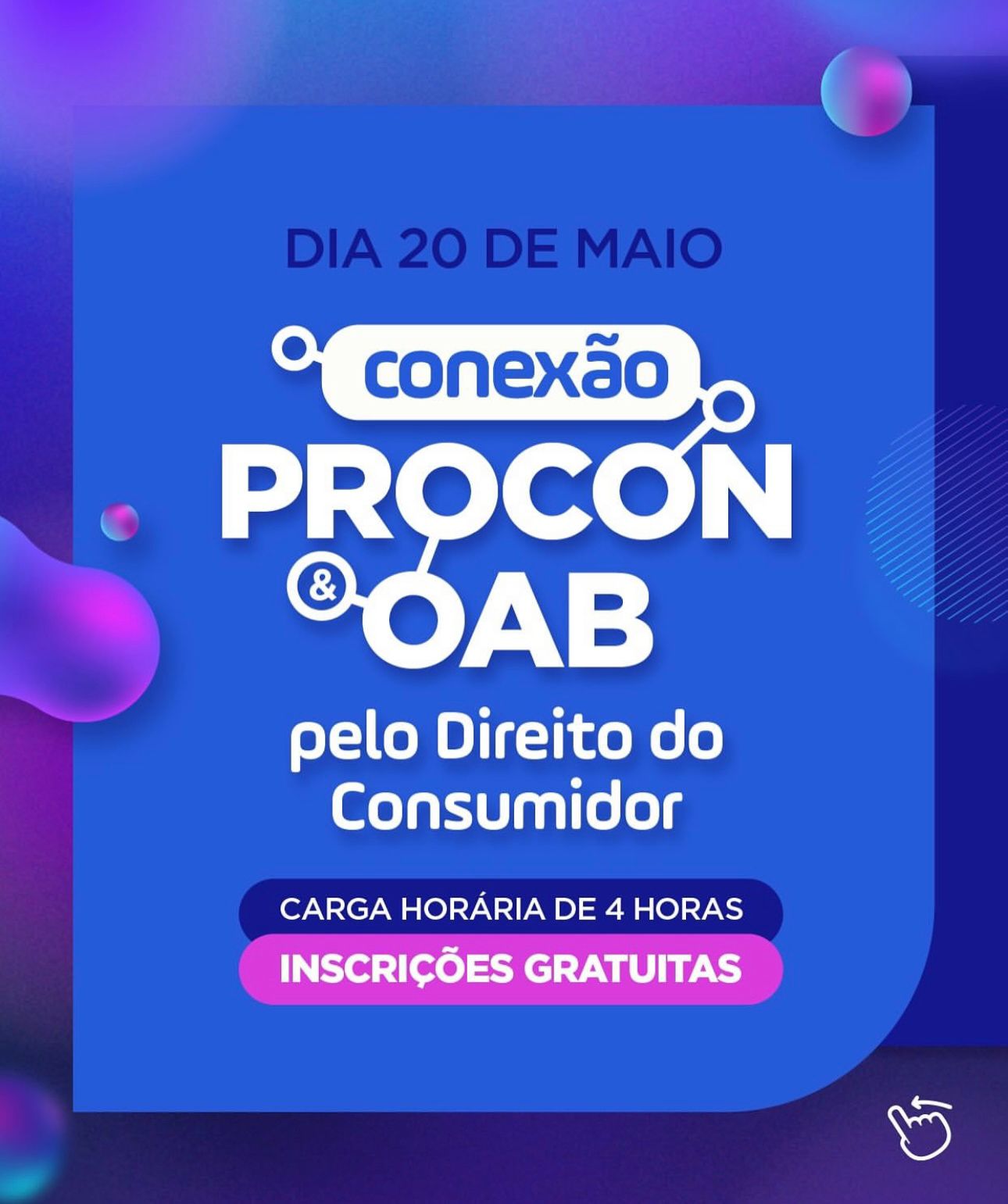 As inscrições são gratuitas e ainda podem ser feitas pelo Sympla. Os últimos ingressos estão disponíveis em: https://www.sympla.com.br/evento/conexao-procon-e-oab-pelo-direito-do-consumidor/2953201?referrer=l.instagram.com.