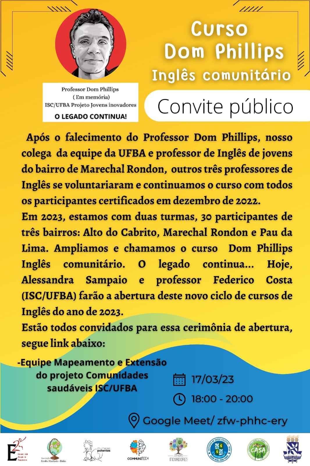 Após o falecimento do Professor Dom Phillips nosso colega da equipe da UFBA e professor de Inglês de jovens do bairro de Marechal Rondon outros 3 professores de Inglês se voluntariaram e continuamos o...