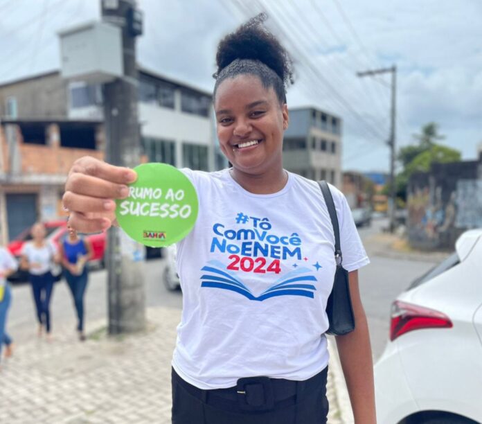 Balanço – No Brasil, ao todo, mais de 4,3 milhões de pessoas se inscreveram no Enem 2024. Na Bahia, foram mais 376 mil inscritos, alcançando 100% dos estudantes concluintes do Ensino Médio, sendo mais 140 mil concluintes da rede estadual de ensino. Um dos fatores que contribuíram para isso foi a ação “Tô com Você no Enem”, desenvolvida pela SEC em toda rede estadual de ensino, ao longo do ano letivo. A ação vem atuando desde a abertura para pedido de isenção na inscrição do Enem até o acolhimento nos dias de prova.