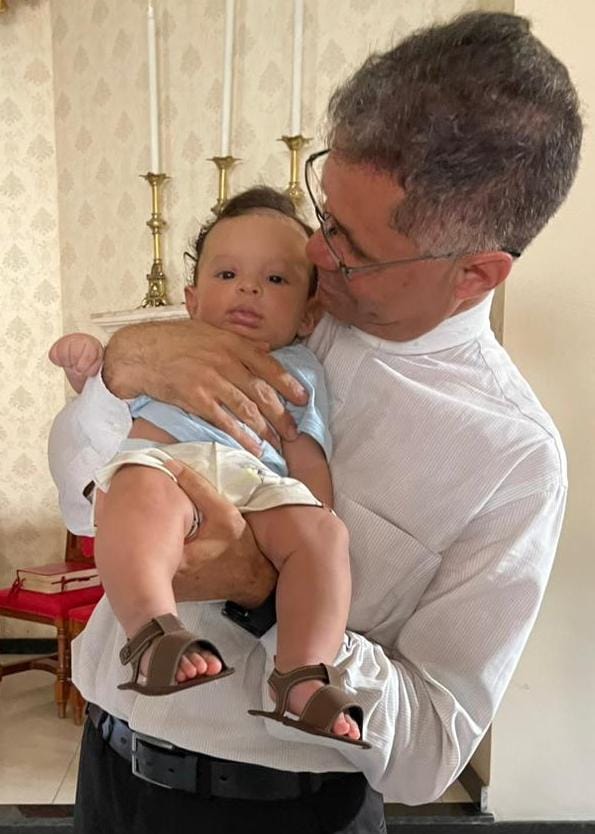 O pequeno Joaquim, neto de Reginaldo Pereira e Orquídea Vaccarezza, recebeu bênçãos especiais em um momento de profunda espiritualidade na Paróquia Imaculada Conceição.