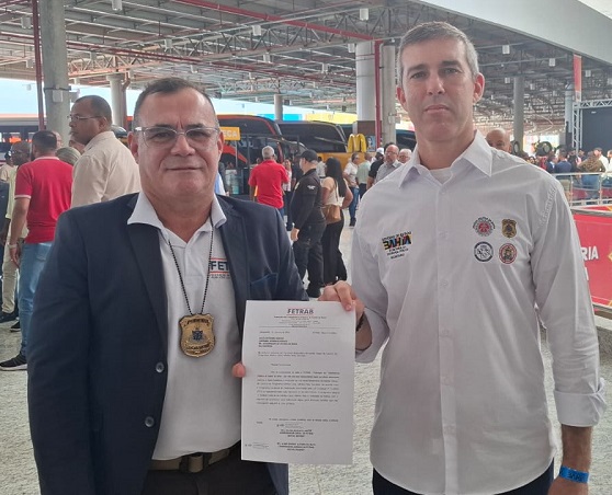 O pleito foi apresentado no dia 19 de janeiro, durante a inauguração da nova Rodoviária de Salvador, no bairro de Águas Claras. Na ocasião, o vice-presidente da Fetrab, Reonei Menezes, aproveitou a presença de autoridades estaduais para protocolar oficialmente a solicitação, formalizada em ofício encaminhado por e-mail à Governadoria do Estado. “A antiga Rodoviária é uma área estratégica e pode ser transformada em moradia para quem dedica a vida ao serviço público. Estamos falando de dignidade, de sair do aluguel e de garantir que o servidor também tenha direito a construir seu patrimônio”, afirmou Reonei.Reonei Menezes e Marcelo Werner, Secretário de Segurança Pública da Bahia