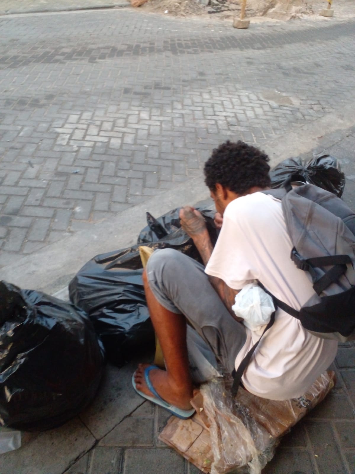 Na tarde desta terça-feira (2) esse jovem foi flagrado se alimentado com sobras de comidas em sacos de lixos. A cena ocorreu na rua Intendente Rui ( a rua da Câmara Municipal...