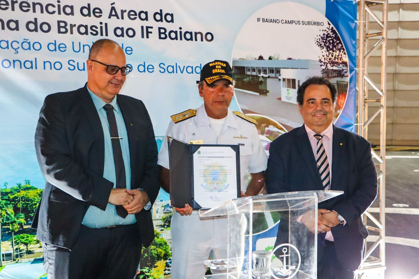 A Marinha do Brasil, por meio do Comando do 2º Distrito Naval, formalizou a transferência de uma área de propriedade da Marinha ao Instituto Federal Baiano (IF Baiano) na última sexta-feira, 24. O terreno, de aproximadamente 75.000 m², está localizado em Paripe, Salvador, à margem da BA-528, e será destinado à implantação de uma unidade educacional do IF Baiano que irá atender necessidades da população do Subúrbio Ferroviário de Salvador, bairros e municípios adjacentes. A doação foi celebrada durante cerimônia realizada a bordo do Navio Doca Multipropósito (NDM) “Bahia”, atracado no Porto de Salvador.