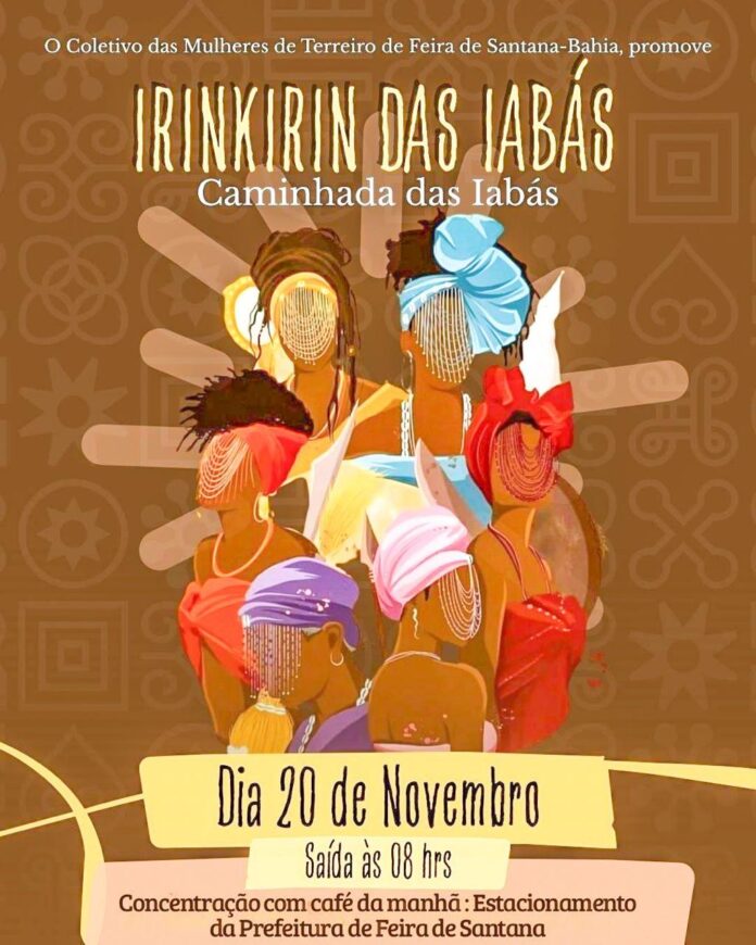 O Coletivo das Mulheres de Terreiro de Feira de Santana – Bahia anuncia a realização do Irinkirin das Iabás – Caminhada das Iabás no dia 20 de novembro, em celebração ao Dia da Consciência Negra. O evento tem como propósito central enaltecer a ancestralidade, a força feminina e o legado das Yabás, as Orixás que simbolizam os múltiplos aspectos do poder das mulheres nas tradições de matriz africana. A iniciativa busca reafirmar a importância da presença e da resistência das mulheres negras e de terreiro na formação da história, espiritualidade e identidade cultural da região.