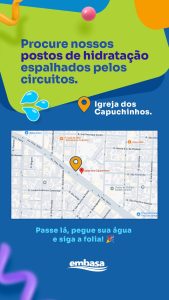 Dois pontos estratégicos estão sendo instalados no circuito Maneca Ferreira, na Avenida Presidente Dutra: *um ao lado da Igreja Santo Antônio (Capuchinhos) e outro próximo à Igreja do Avivamento*. Basta levar a garrafinha e abastecer com água fresquinha para seguir o trio com segurança e disposição. Além dos bebedouros instalados nos pontos, equipes da Embasa farão a distribuição volante de copos de água nos momentos de passagem dos trios elétricos. A ação contará com mais de 30 trabalhadores atuando das 15h às 0h, em todos os dias da festa.