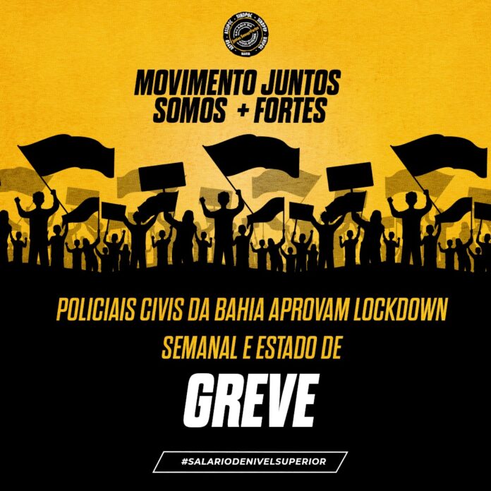 Em assembleia virtual realizada na noite desta terça-feira(18), o Movimento Juntos Somos Mais Fortes aprovou o Lockdown Semanal, a ser realizado todas quintas- feiras, bem assim o estado de greve dos policiais civis da Bahia.