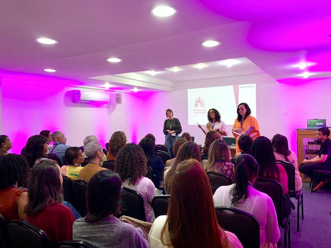 Mulheres com câncer de pulmão participaram, na manhã desta sexta-feira (14), de um encontro dedicado ao acolhimento, à troca de experiências e ao acesso à informação qualificada, promovido pelo Grupo Brasileiro de Oncologia Torácica (GBOT) no auditório da Associação Bahiana de Medicina (ABM), em Salvador. A atividade integrou uma mobilização nacional realizada simultaneamente no Rio de Janeiro e em Porto Alegre.