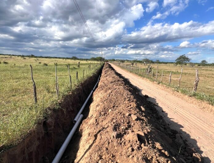 Está entrando na reta final a obra que vai beneficiar mais de dois mil moradores das zonas rurais dos municípios de Nova Fátima e Pé de Serra. Com 80% dos serviços executados, a Embasa está implantando uma nova adutora para melhorar o abastecimento nas localidades de Santo Antônio, São Joaquim, Jurubeba, Sinuque, Pituba, Alto Bonito, Caldeirão, Salto da Pedra, Jaboticaba, Mosquito, Morro de Baixo e Capoeira de Baixo, em Nova Fátima, e Tanquinho, Vale Verde e Rosa Benta, que pertencem ao município de Pé de Serra.