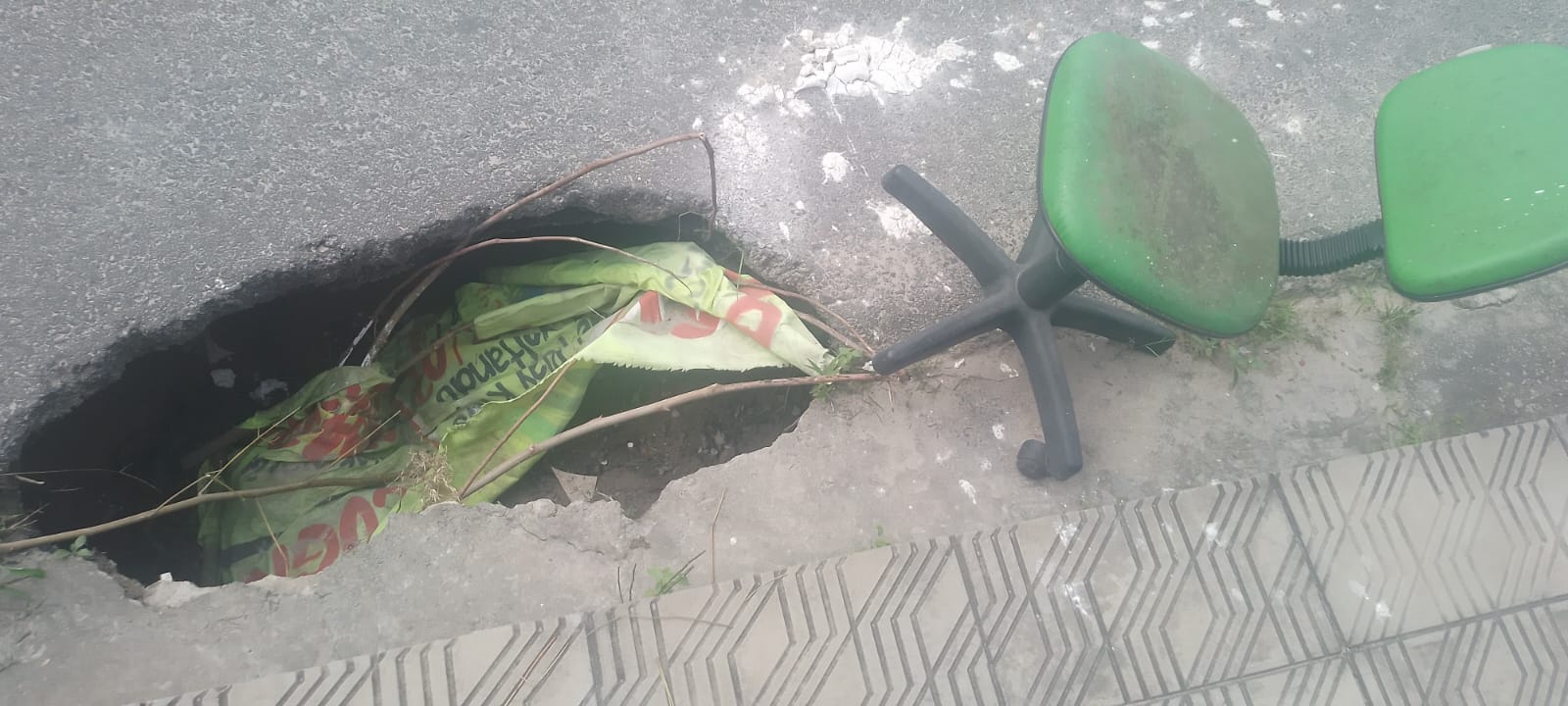 Recentemente, moradores colocaram uma cadeira no local para sinalizá-lo e, quem sabe, dar um descanso ao mesmo, que vive cansado de esperar por sua reparação. No entanto, agentes de limpeza da cidade recolheram o móvel, mas o buraco continua.