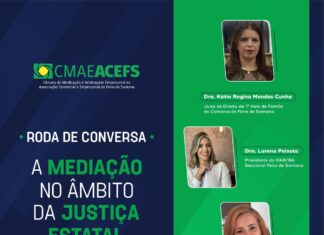 Uma roda de conversa sobre “a mediação no âmbito da Justiça Estatal” será realizada nesta quarta-feira (15), a partir das 18h30, no auditório da Associação Comercial e Empresarial de Feira de Santana (ACEFS). A...