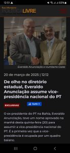 “É uma fortalecimento político da presença do estado no cenário do partido, tanto do governo, com a presença de Rui Costa, Jaques Wagner, Sidônio Palmeira e Margareth Menezes, nesse espaço político quanto dentro do Partido dos Trabalhadores que realiza eleições também para a nova direção no dia 6 de julho”, comemorou Everaldo.