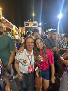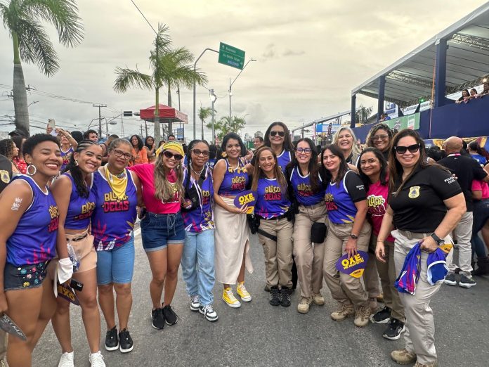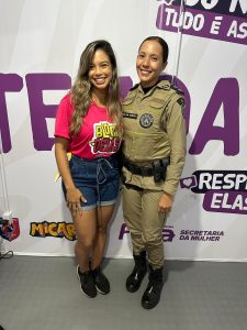 Neste ano de 2025, especificamente, houve uma novidade: a “tenda lilás”, situada no meio do circuito Maneca Ferreira, que ofertava estrutura, tanto para a Ronda Maria da Penha quanto para a Secretaria Municipal de Políticas para mulheres. E, ao lado, destas, estava a Secretaria Estadual de Políticas para Mulheres.
