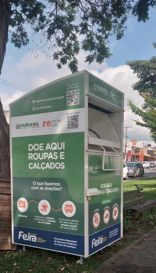 Iniciativa da Humana Brasil reforça mobilização da população feirense para doação de roupas, calçados e acessórios têxteis em pontos espalhados pela cidade. Ação promove reuso, moda sustentável e economia circular