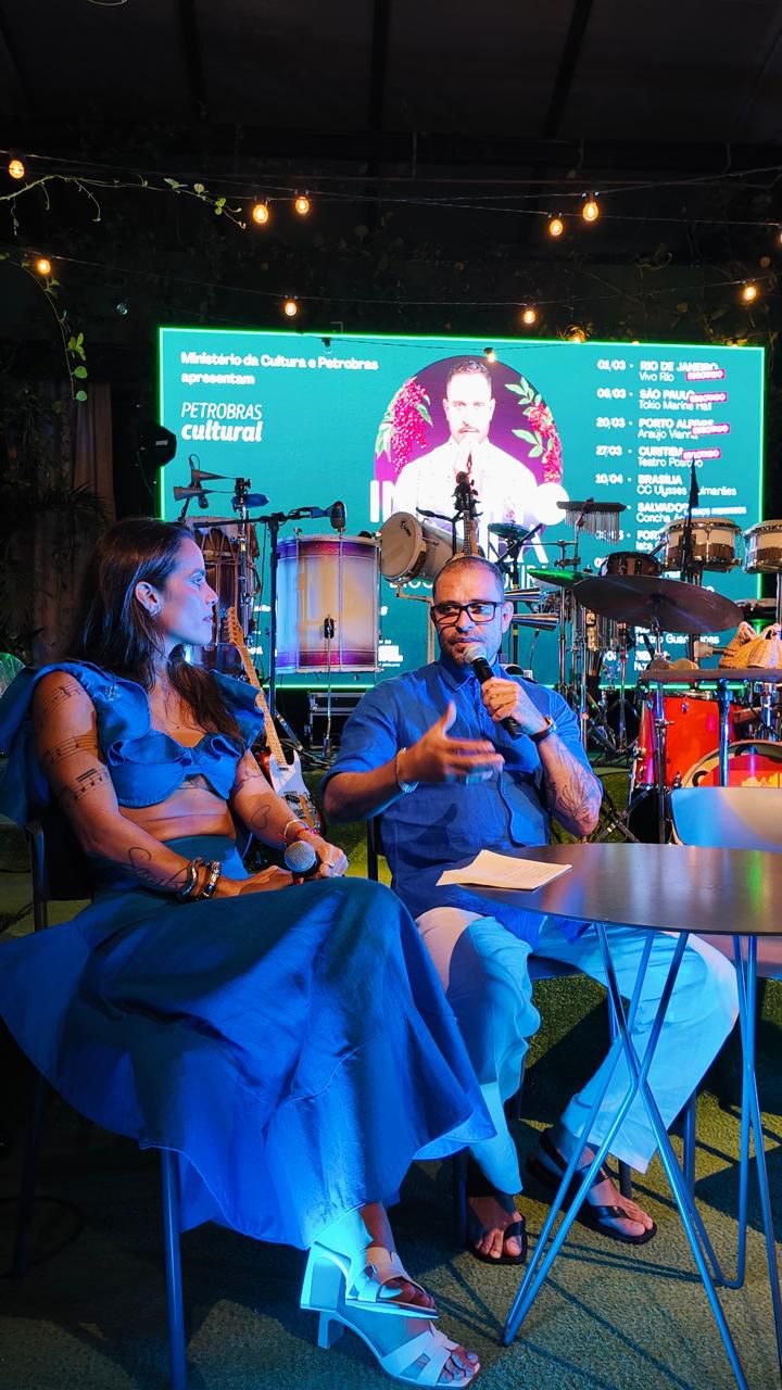 A Sambaiana se apresentou na noite desta quinta-feira (23), durante a coletiva de imprensa de lançamento da turnê “Infinito Samba”, do cantor Diogo Nogueira, em Salvador. O evento, realizado no Colaboraê, no bairro do Rio Vermelho, no dia em que se celebra São Jorge, contou com um pocket show do coletivo musical feminino, além de um dueto entre o grupo e o artista carioca.
