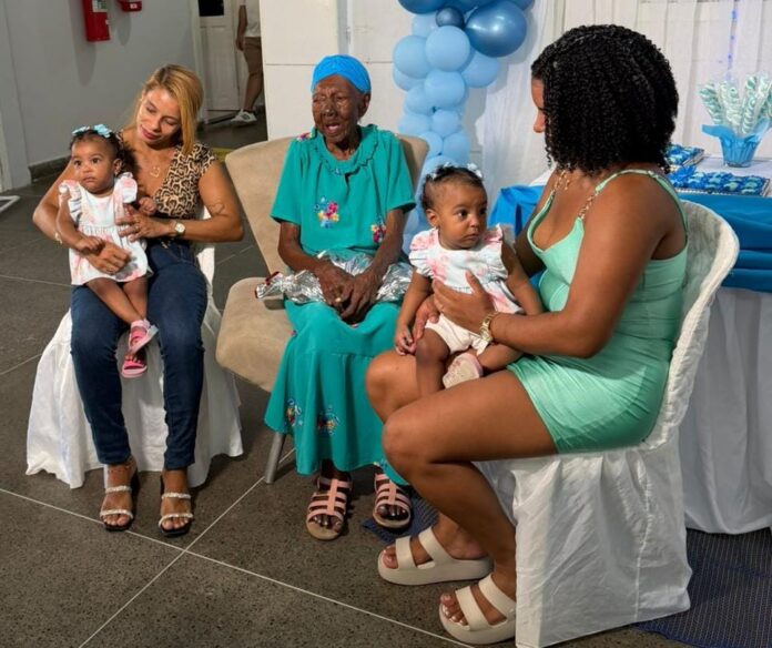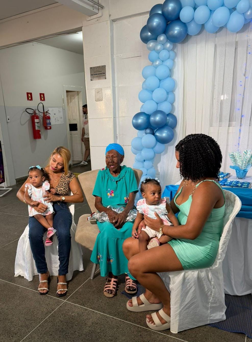 A celebração foi organizada pelo grupo Aniversário Solidário, formado por voluntários, e aconteceu no pátio do Colégio Batista de Itabuna (CBI). O evento reuniu familiares, amigos e tetranetas da aniversariante em uma tarde de homenagens e gratidão. A decoração foi assinada por Neiva Oliveira dos Santos.