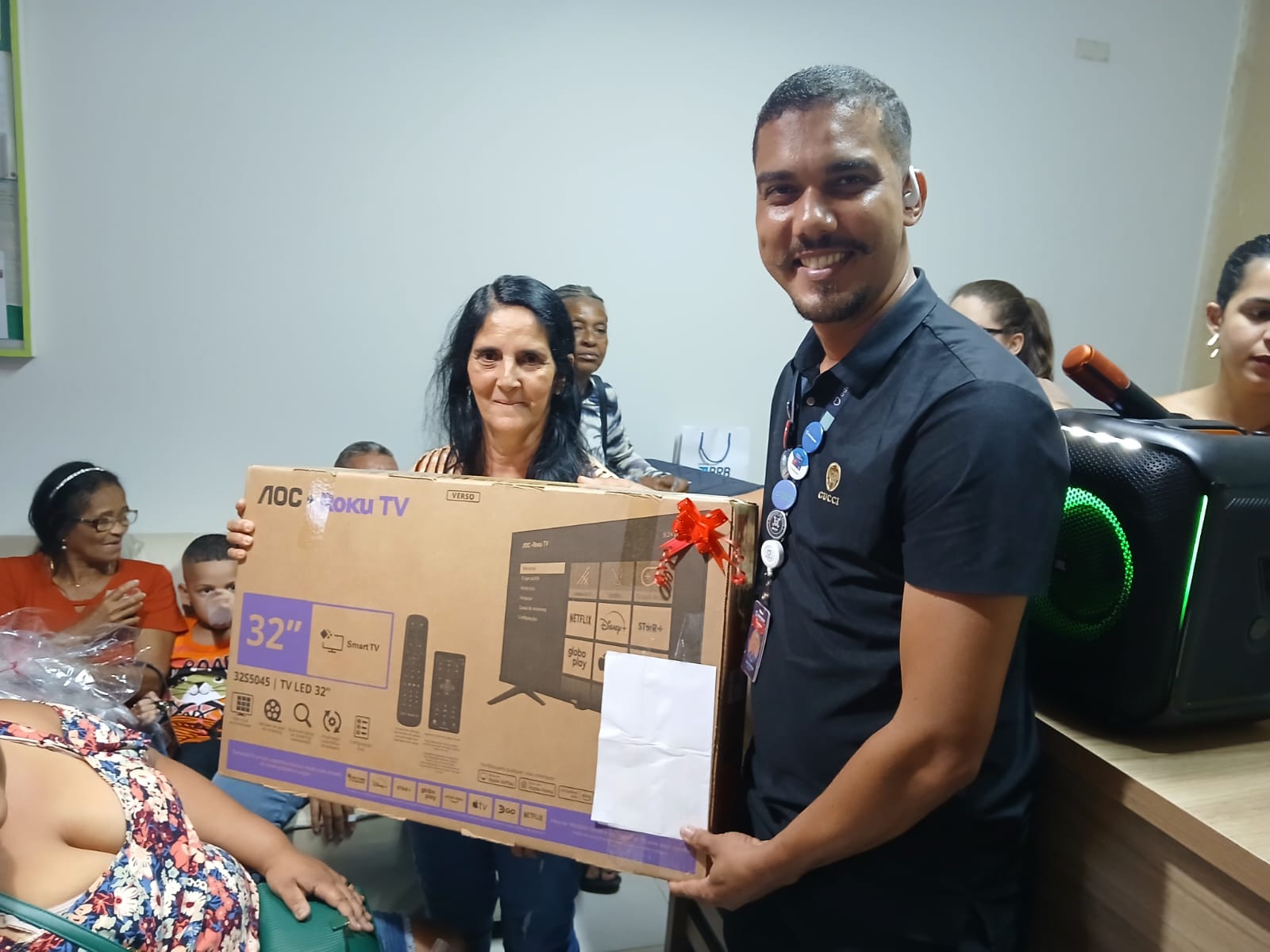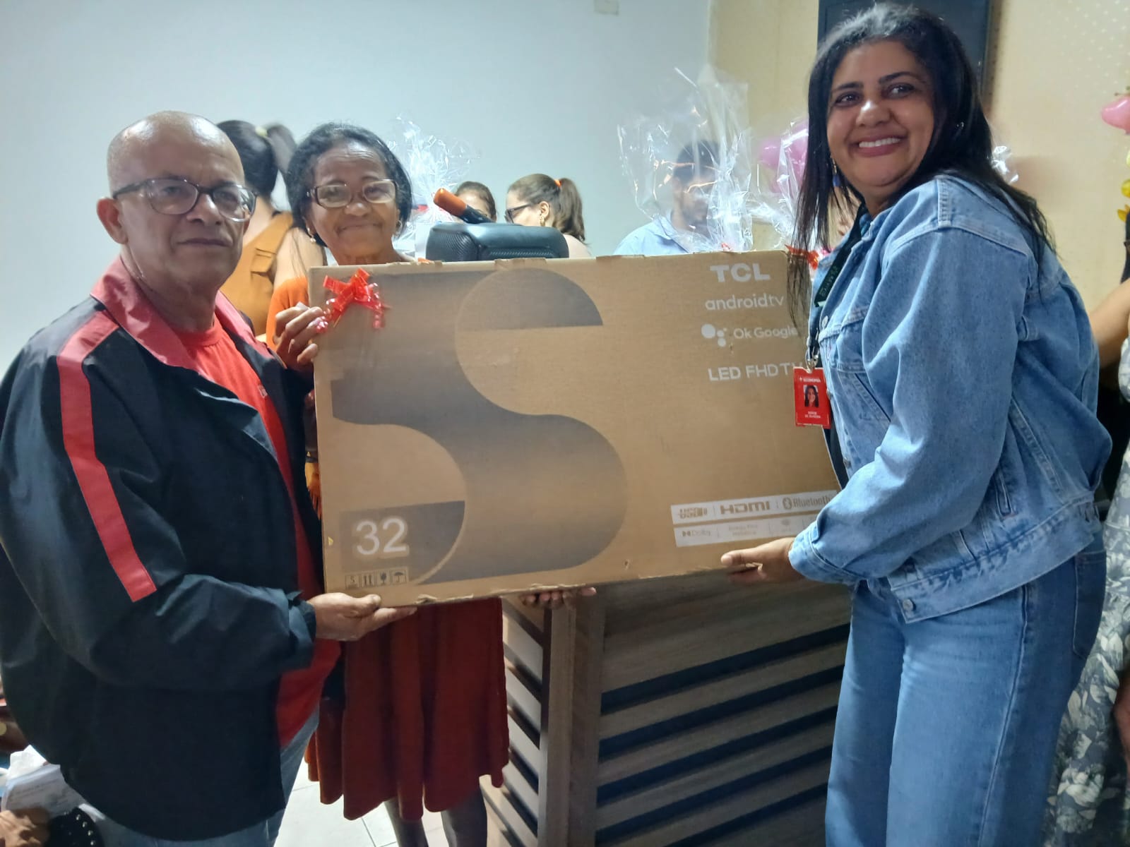 Um dos momentos mais marcantes da tarde foi protagonizado pela servidora aposentada Josefa de Jesus Moreira, que viveu uma emoção única ao ser sorteada com uma das TVs de 32 polegadas. Após três anos sem televisão em casa, dona Josefa contou, antes mesmo do sorteio, que sonhava em ganhar o prêmio — e o destino atendeu ao seu pedido.
