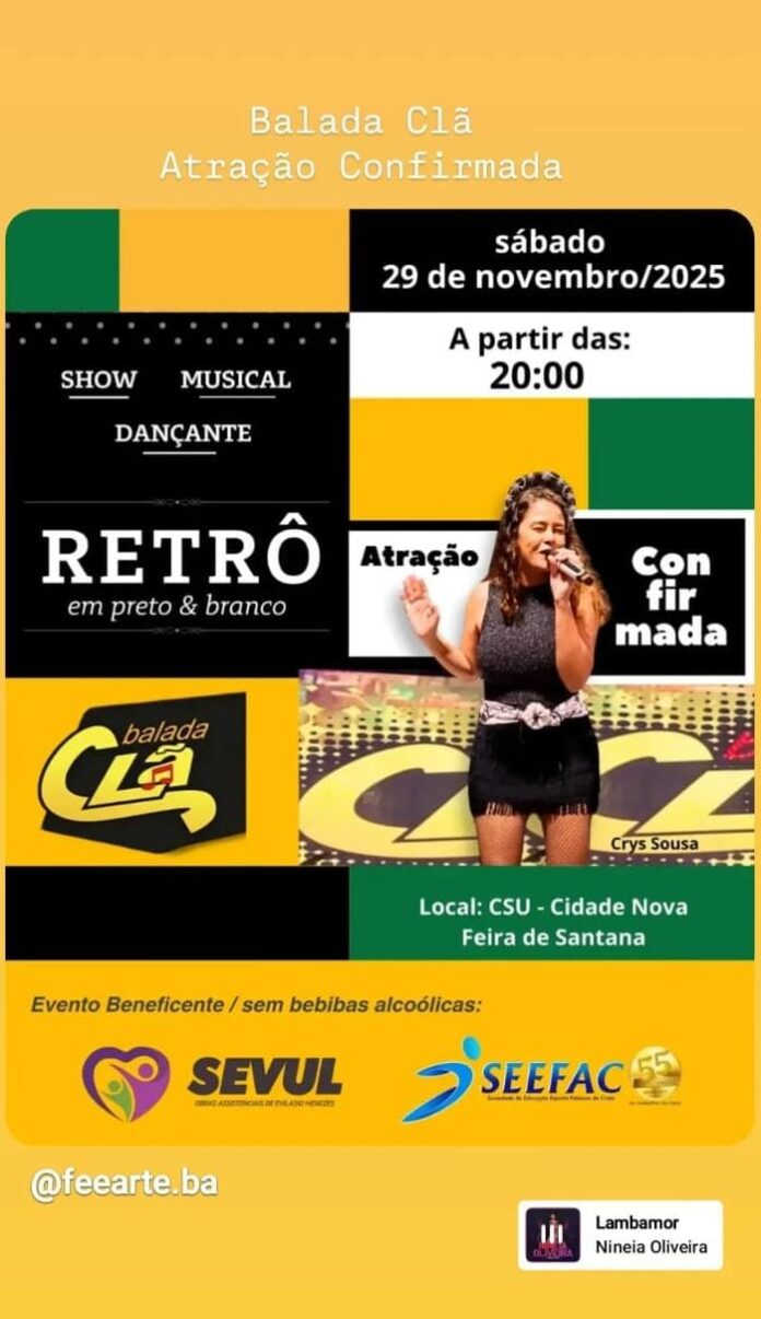 A Banda Balada Clã é a atração principal confirmada do evento beneficente “RETRÔ em Preto & Branco”, um Show Musical Dançante que une entretenimento e solidariedade. O evento tem como objetivo arrecadar fundos para as importantes obras assistenciais da SEVUL – Obras Assistenciais de Tio Vila, incluindo o Lar de Idosos Francisco de Assis, e da SEEFAC – Sociedade Espírita Encontros Fabiano de Cristo, que atende Gestantes e Mães através da Manjedoura.