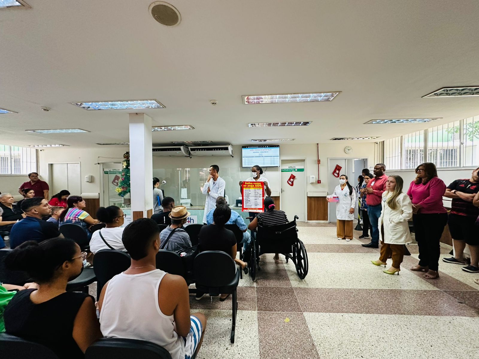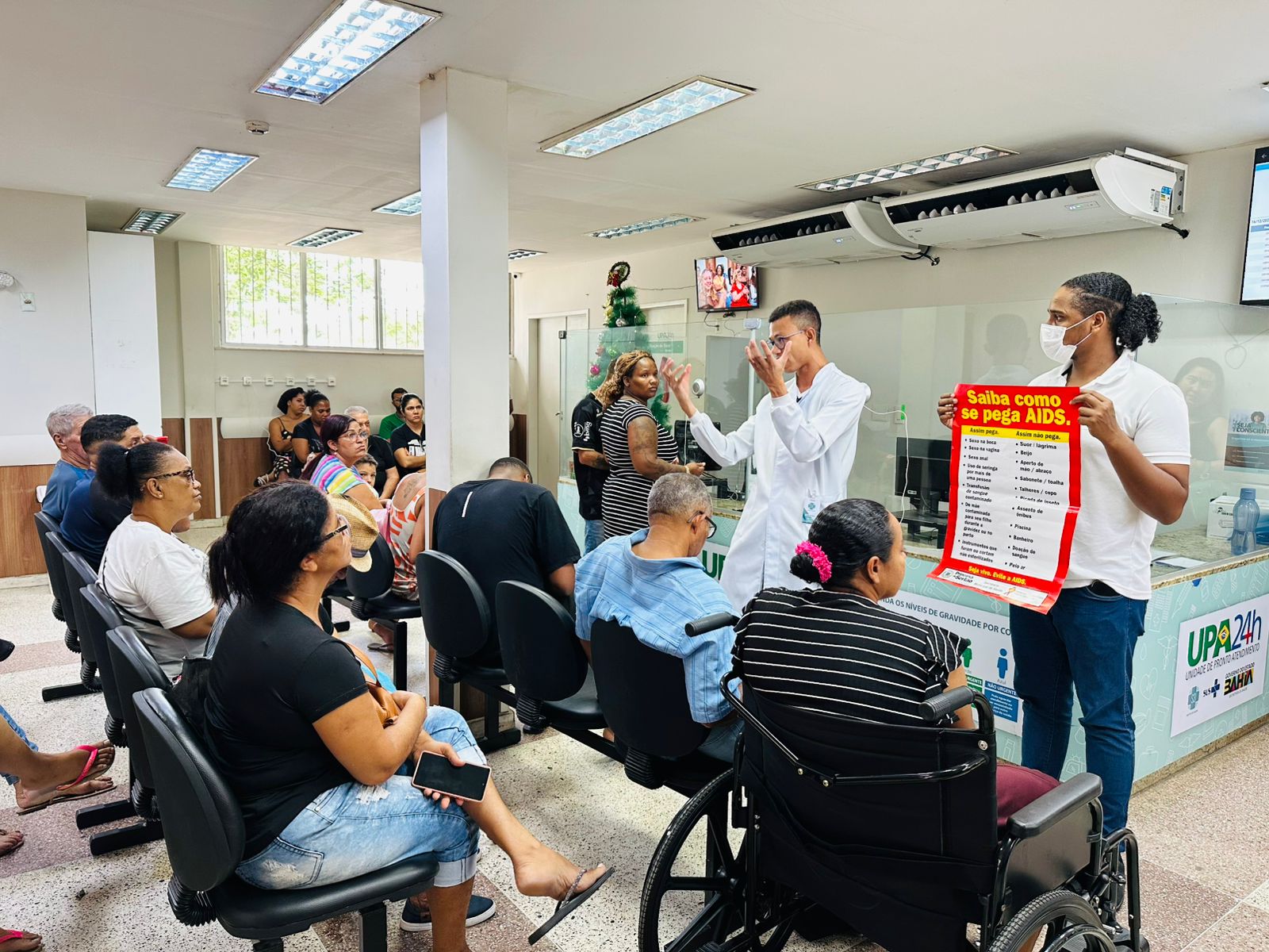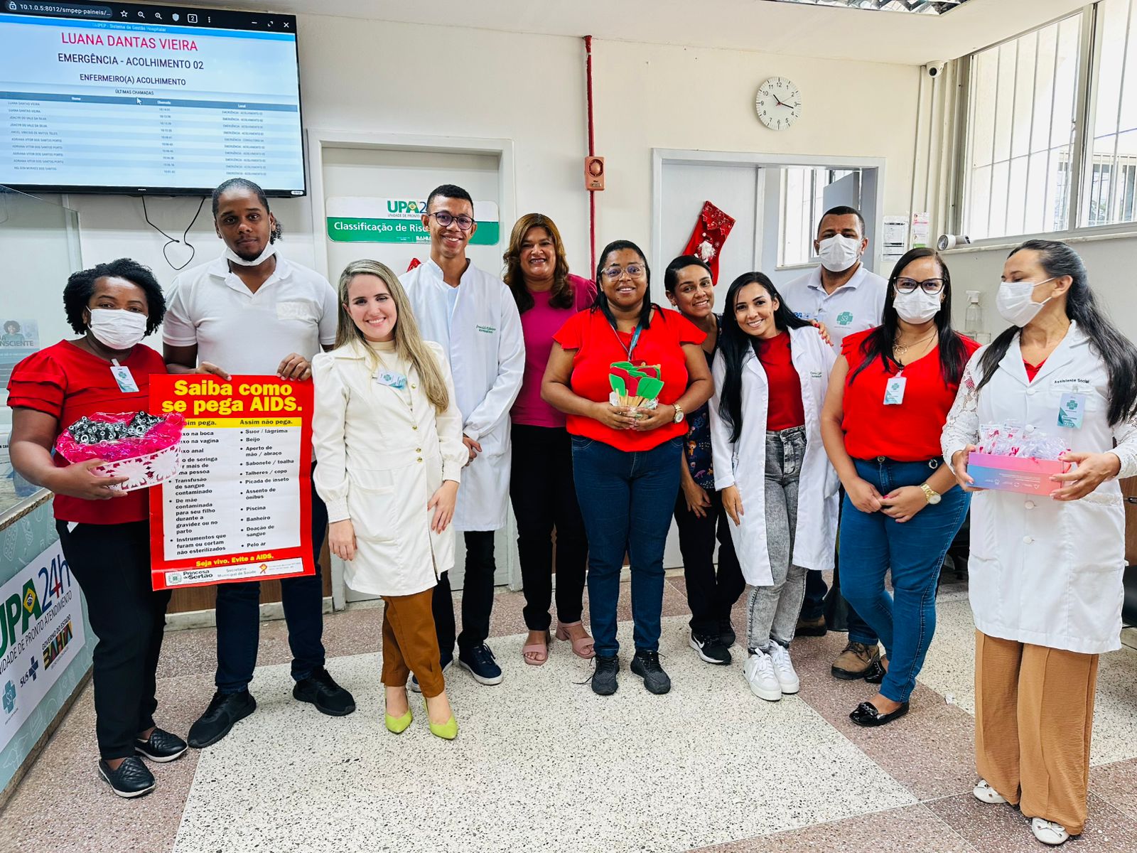 Na manhã desta segunda-feira (16), a UPA Estadual de Feira de Santana promoveu uma ação educativa em alusão ao Dezembro Vermelho, campanha dedicada à conscientização e combate ao HIV/Aids. A iniciativa reuniu colaboradores, gestores e pacientes em atividades que destacaram a importância da prevenção, do diagnóstico precoce e do tratamento da doença.