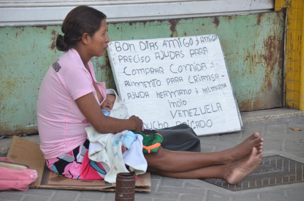 Desde 2020 em Feira de Santana, grupos de venezuelanos permanecem nas calçadas e nas sinaleiras da cidade com cartazes pedindo dinheiro para comprar comidas e alimentação para crianças.