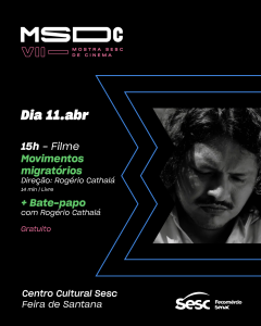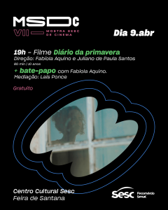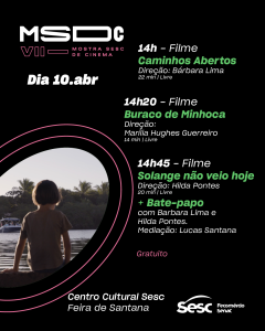 Uma das principais iniciativas de incentivo ao cinema independente no Brasil, a Mostra Sesc de Cinema vem para a Bahia com produções que representam a pluralidade cultural do país. A programação da sétima edição do projeto acontece entre os dias 8 e 11 de abril no Centro Cultural Sesc Feira de Santana, com exibições gratuitas de curtas, médias e longas metragens, além de debates com os diretores das obras.